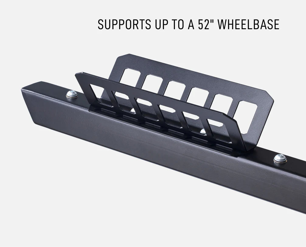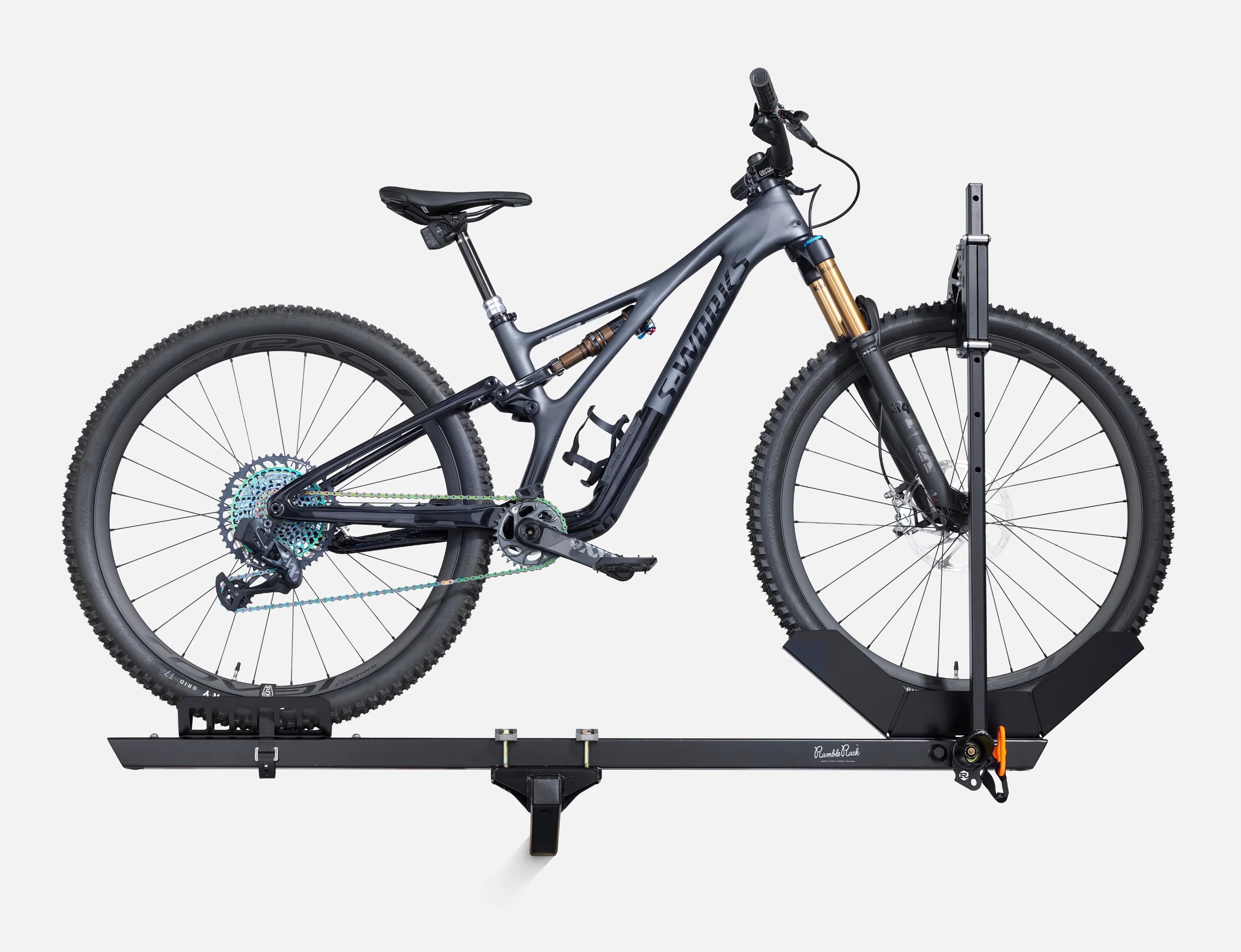 RambleRack™ is designed specifically for use on the UltraSwing, but will also work great on other off-road swing-out bumpers or as a static bike rack plugged straight into your hitch. RambleRack is our single-bike option with a static high-clearance stinger.